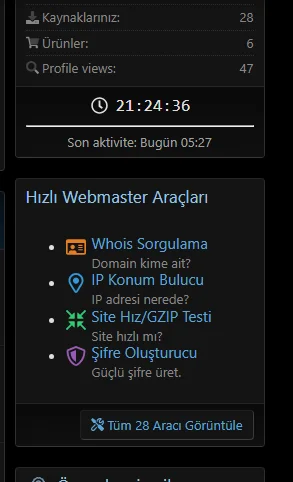 Forum yöneticileri için gelişmiş sunucu istatistikleri, hızlı yönetim kısayolları ve SEO analizlerini içeren hepsi bir arada webmaster yönetim paketi.